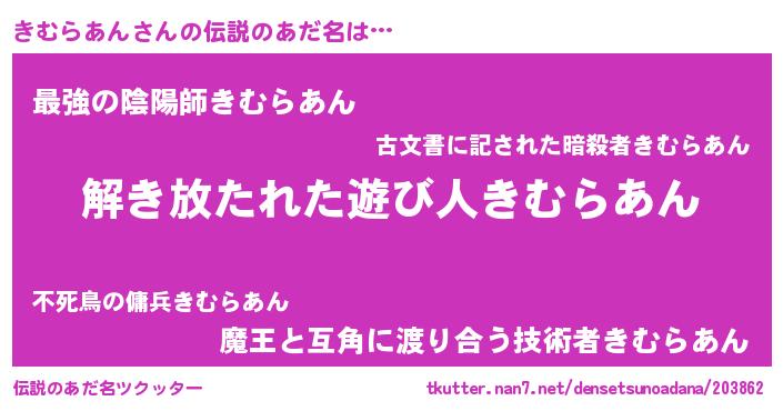| 意味不明あだ名 | 『とにかく怪しいきむらあん』 |