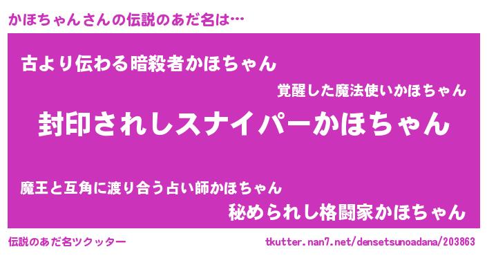 | ポケモン風あだ名 | 『カホゴンZ』『カホチュウ』 |