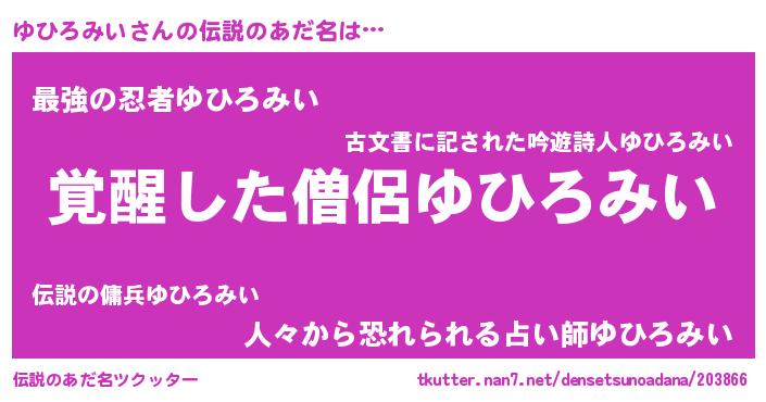 | ヒーロー風カッコイイあだ名 | 『天弓騎士ユヒ』『超時空戦士ユヒロミイ』 |