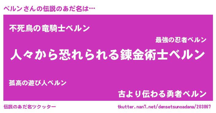 | 男性向けラノベタイトル風あだ名 | 『おまえをオタクにしてやるから、俺をベルンにしてくれ! 』 |