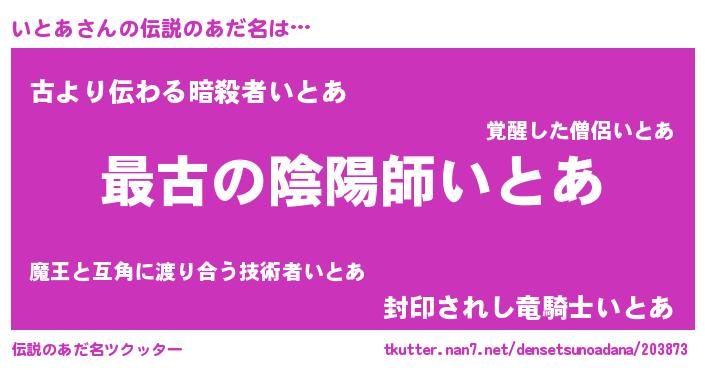 | 意味不明あだ名 | 『住所不定無職いとあ(95歳)』 |