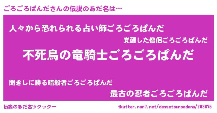 | ヒーロー風カッコイイあだ名 | 『スーパーゴロゴロパンダ』 |