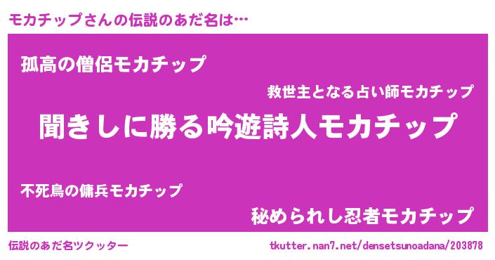 | ヒーロー風カッコイイあだ名 | 『ネオモカチップ』『銀牙騎士モカ』 |