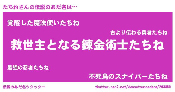 | 女子向けラノベタイトル風あだ名 | 『死神たちねの再婚』『たちね様がみてる』 |