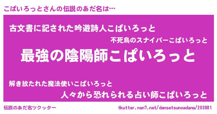 | ヒーロー風カッコイイあだ名 | 『ウルトラこぱいろっとマン』 |
