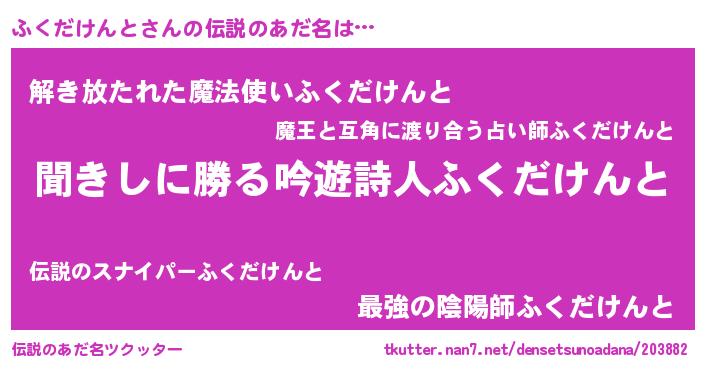 | 男性向けラノベタイトル風あだ名 | 『フクダケントスレイヤー』 |