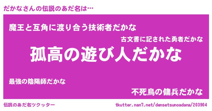 | ヒーロー風カッコイイあだ名 | 『黄金騎士ダカ』『友情の使者だかな』 |