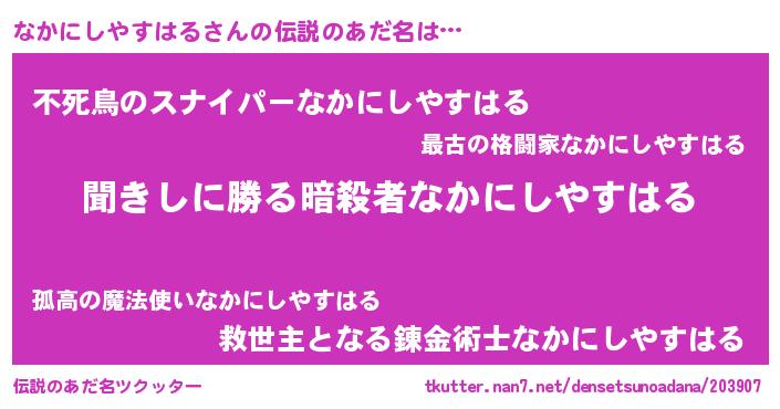 | 意味不明あだ名 | 『永久保存なかにしやすはる』 |
