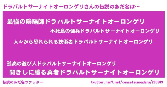 | ヒーロー風カッコイイあだ名 | 『友情の使者ドラパルトサーナイトオーロンゲリ』 |