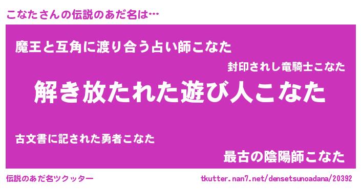 | ヒーロー風カッコイイあだ名 | 『銀牙騎士コナ』『慈愛の使者こなた』 |