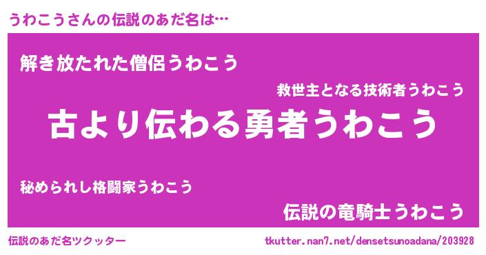 | ピコ太郎風あだ名 | 『ピコウ郎』『ウワ四郎』『ウコ次郎』 |