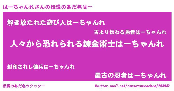 | 欧米人風あだ名 | 『ケンブリッジはーちゃんれ』 |