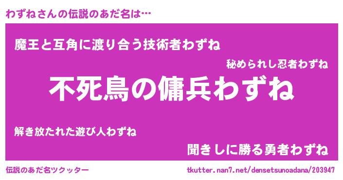 | 意味不明あだ名 | 『ペロリンわずね』『自称わずね』 |