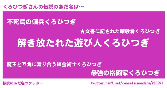 | ヒーロー風カッコイイあだ名 | 『魔戒騎士クロ』『スーパークロヒツギ』 |