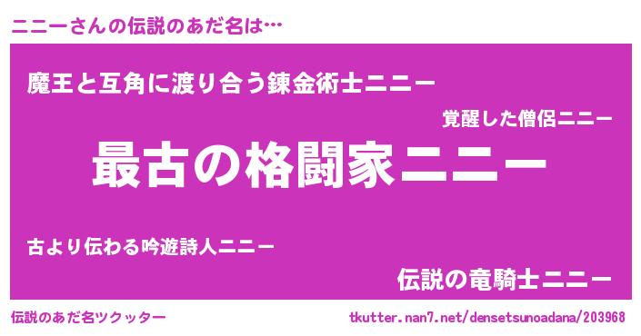 | ファンタジー風あだ名 | 『エターナルニニーー』『カークニニラー』 |