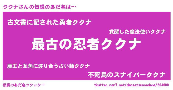 | 意味不明あだ名 | 『住所不定無職ククナ(41歳)』『自称ククナ』 |