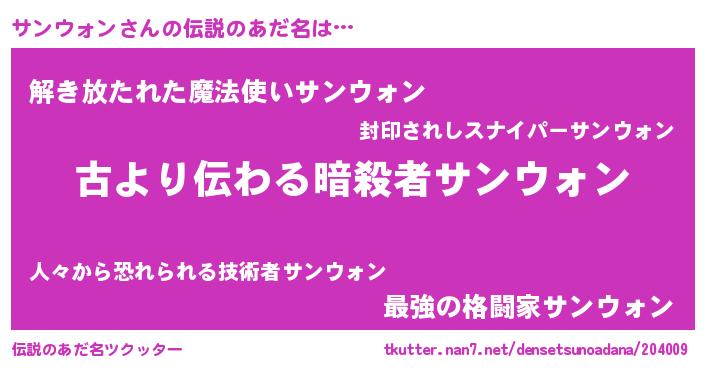 | 意味不明あだ名 | 『永久保存サンウォン』『自称サンウォン』 |