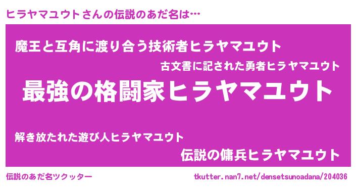 | ファンタジー風あだ名 | 『エターナルヒラヤマユウトー』 |
