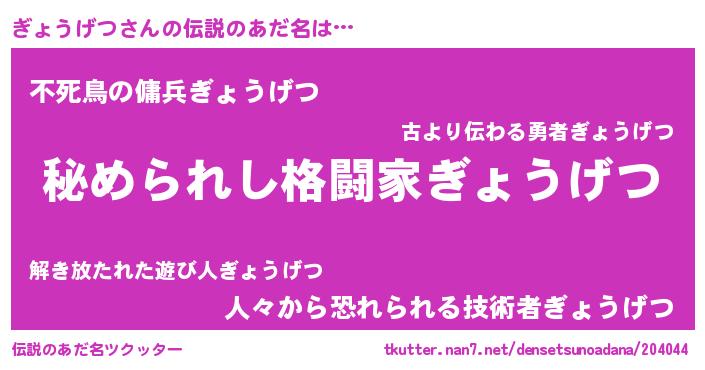 | 意味不明あだ名 | 『ぎょうげつフォーエバー』 |