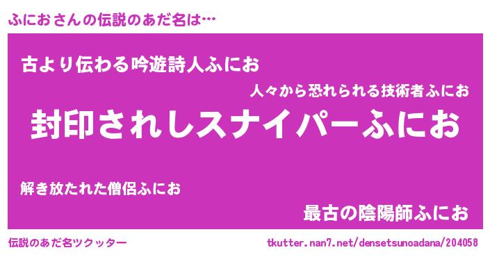 | 胡散臭い通販商品みたいなあだ名 | 『億万長者になれる霊験あらたかなお札…その名も「ふにお」』 |