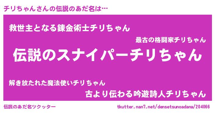 | ヒーロー風カッコイイあだ名 | 『スーパーチリチャン』『ネオチリチャン』 |