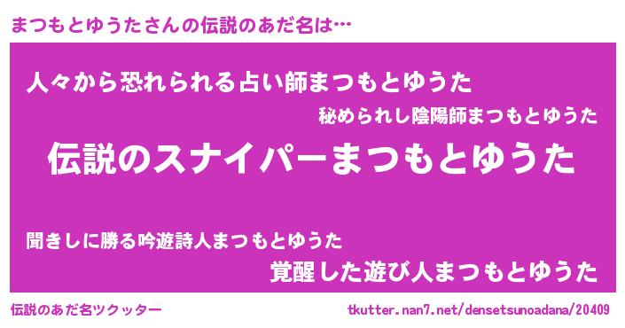 | 胡散臭い通販商品みたいなあだ名 | 『必ず成功する霊験あらたかなお札…その名も「まつもとゆうた」』 |