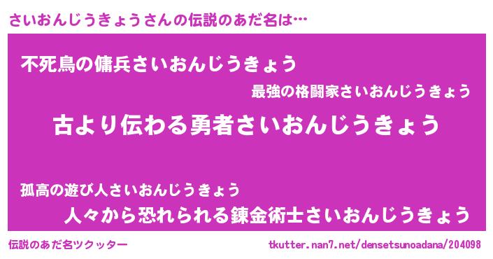 | 意味不明あだ名 | 『永久保存さいおんじうきょう』 |