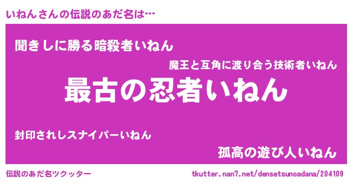 | 意味不明あだ名 | 『住所不定無職いねん(43歳)』『自称いねん』 |