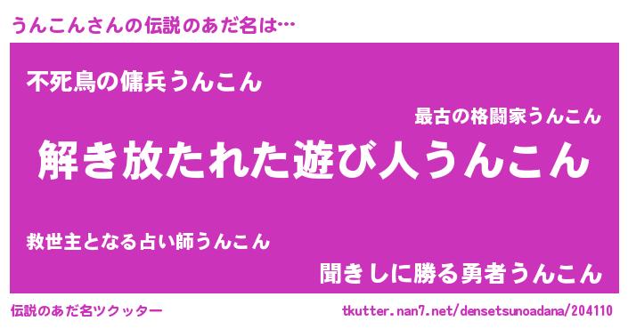 | ヒーロー風カッコイイあだ名 | 『魔戒騎士ウン』『スーパーウンコン』 |