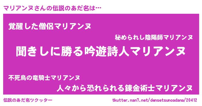 | 意味不明あだ名 | 『住所不定無職マリアンヌ(7歳)』 |