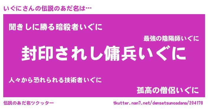 | ヘコむあだ名 | 『いぐにゅー』『いぐに(小並感)』 |