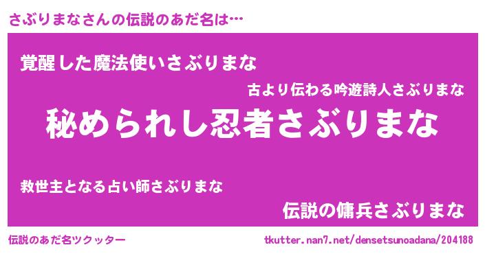 | 料理風あだ名 | 『さぶりまなのカルパッチョ風』 |