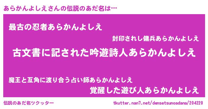 | 意味不明あだ名 | 『永久保存あらかんよしえ』 |