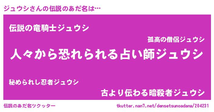 | 男性向けラノベタイトル風あだ名 | 『おまえをオタクにしてやるから、俺をジュウシにしてくれ! 』 |