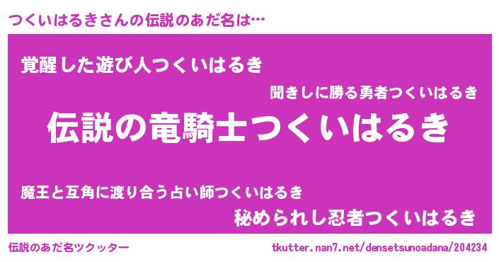 | ヒーロー風カッコイイあだ名 | 『スーパーツクイハルキ』『銀牙騎士ツク』 |