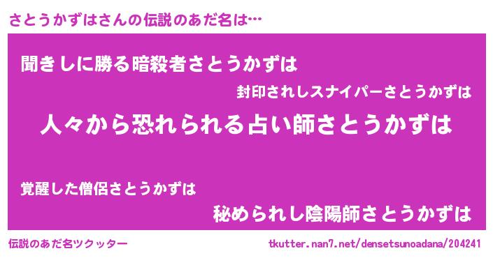 | 男性向けラノベタイトル風あだ名 | 『魔法科高校のさとうかずは』 |
