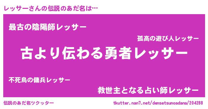 | 意味不明あだ名 | 『永久保存レッサー』『ペロリンレッサー』 |