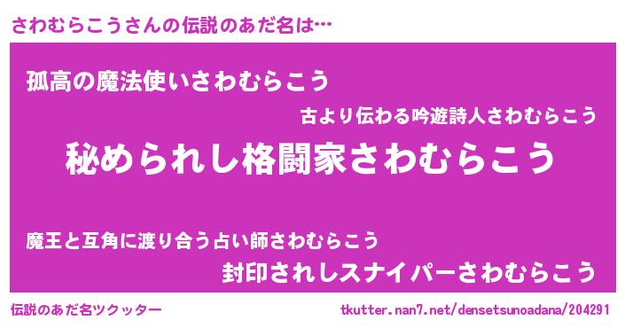 | 意味不明あだ名 | 『さわむらこうフォーエバー』 |