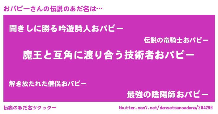 | 女子向けラノベタイトル風あだ名 | 『おパピー恋絵巻』 |