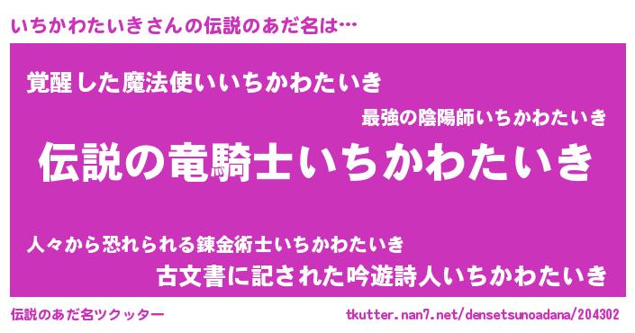 | 胡散臭い通販商品みたいなあだ名 | 『必ず成功するブレスレット…その名も「いちかわたいき」』 |