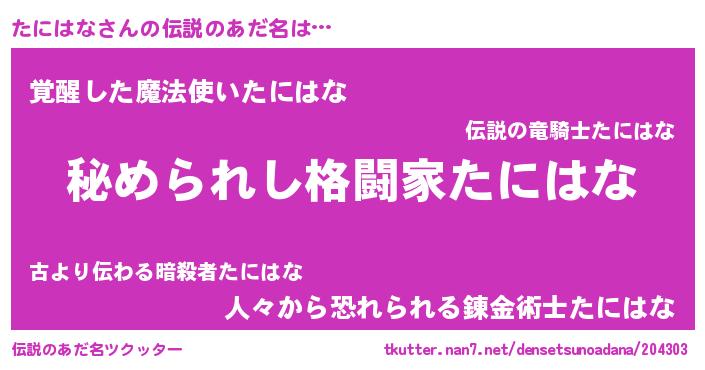 | 意味不明あだ名 | 『たにはなフォーエバー』 |