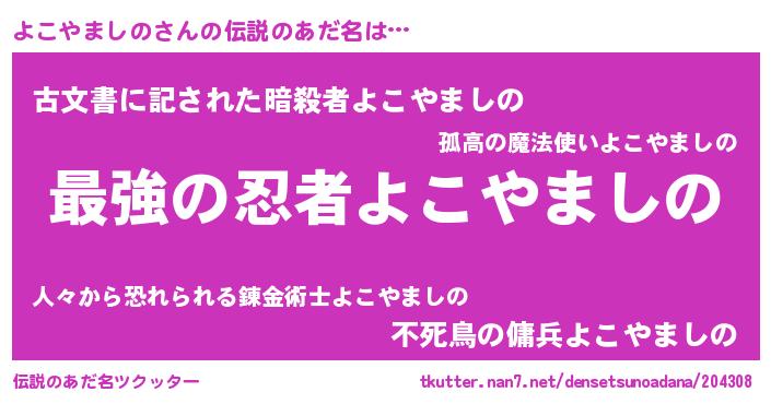| 男性向けラノベタイトル風あだ名 | 『うちのよこやましのが世界を掌握している!』 |