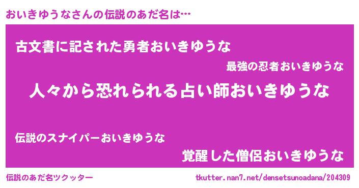 | 欧米人風あだ名 | 『ダニエルおいきゆうな』 |