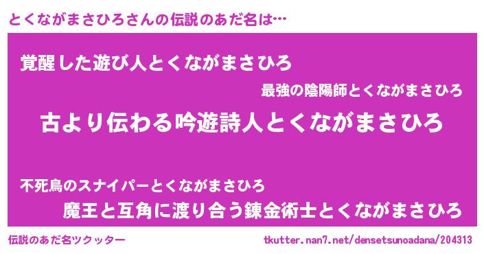| 意味不明あだ名 | 『永久保存とくながまさひろ』 |