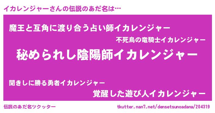 | ファンタジー風あだ名 | 『エターナルイカレンジャーー』 |