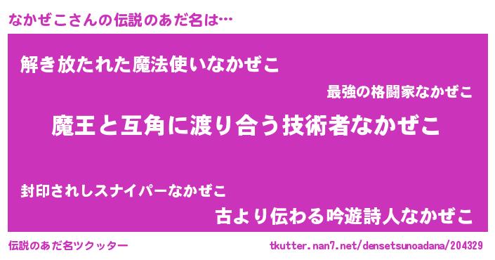 | ヒーロー風カッコイイあだ名 | 『友情の使者なかぜこ』『魔戒騎士ナカ』 |