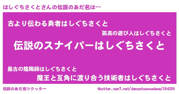 | 意味不明あだ名 | 『自称はしぐちさくと』 |