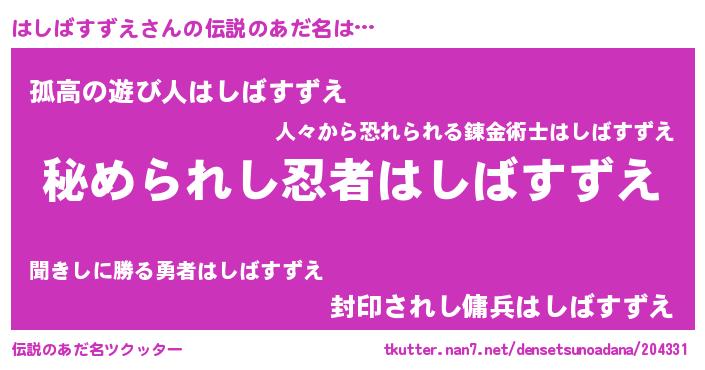 | 欧米人風あだ名 | 『はしばすずえクリステル』 |