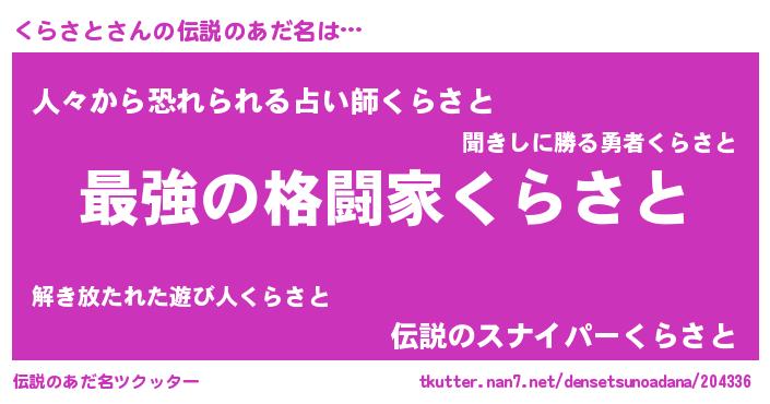 | 意味不明あだ名 | 『くらさとフォーエバー』『自称くらさと』 |