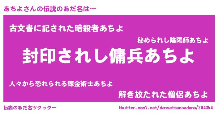 | 胡散臭い通販商品みたいなあだ名 | 『億万長者になれる水晶球…その名も「あちよ」』 |
